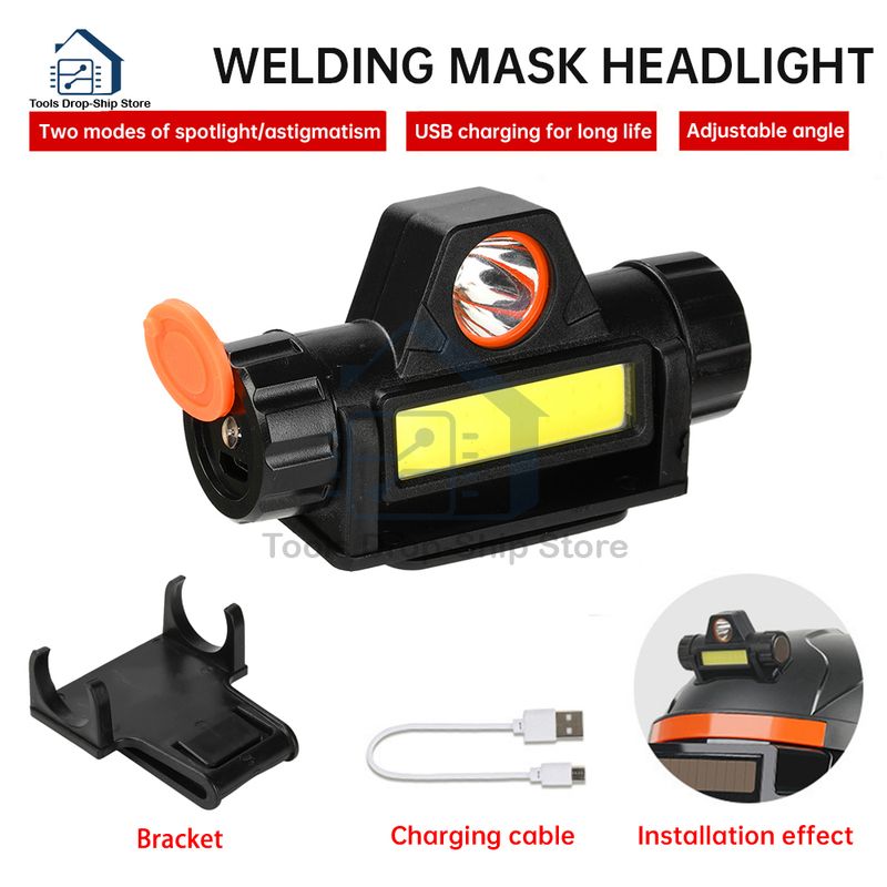 Welding Face Cover Lamp Welder Mask Headlamp Automatic Dimming Electric Welding Headlight for Arc Weld Grind Cut with Bracket