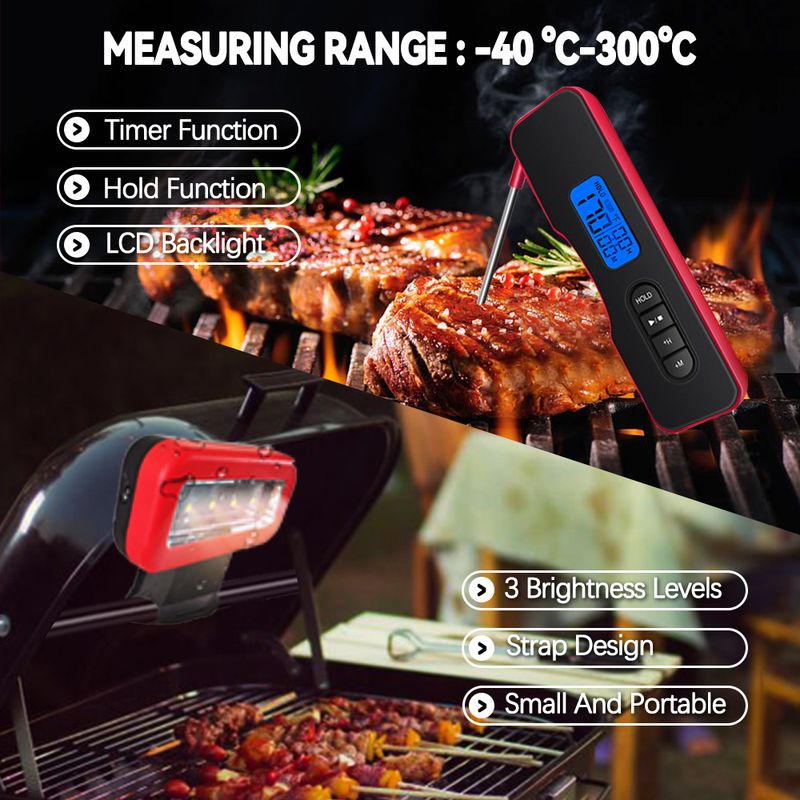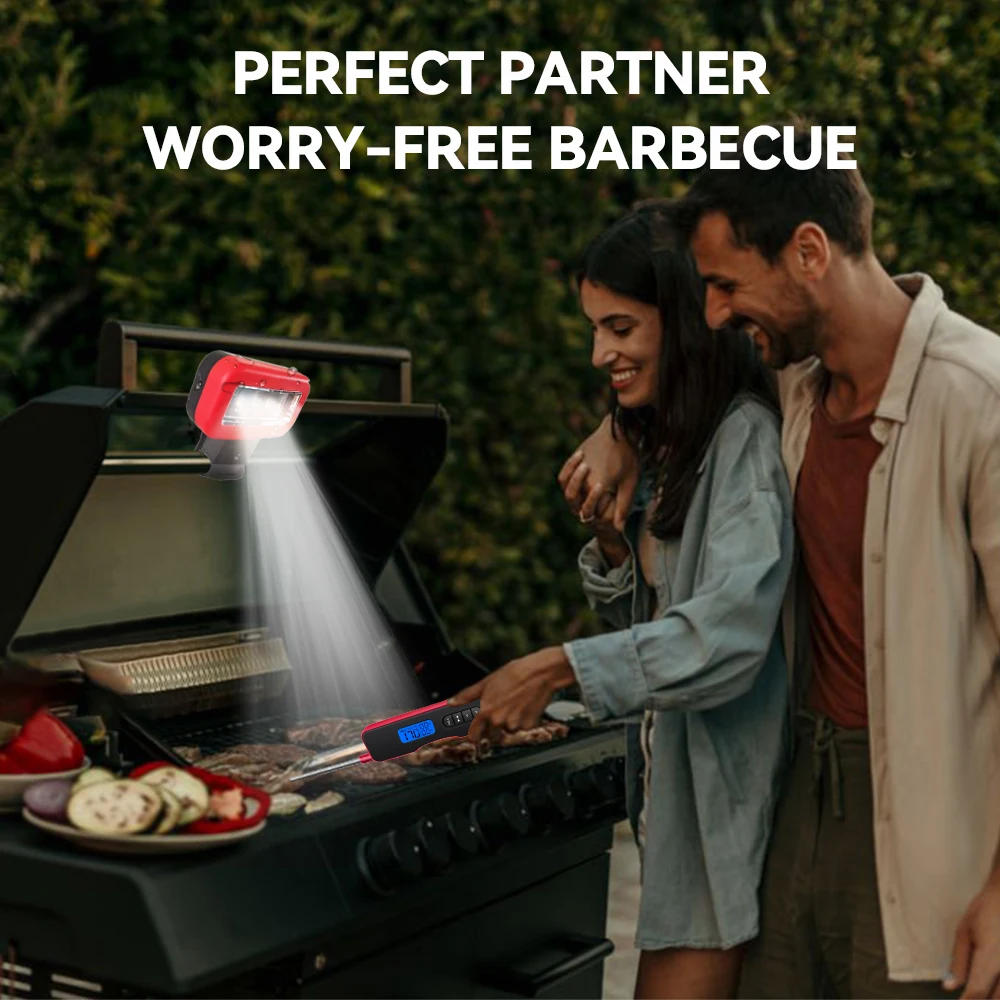 【Compact and portable, worry free storage】 - The combination of barbecue light and meat thermometer is compact in size, making it easy to carry and store. Whether it's a family picnic, camping, or outdoor barbecue party, it can be easily carried without taking up space.