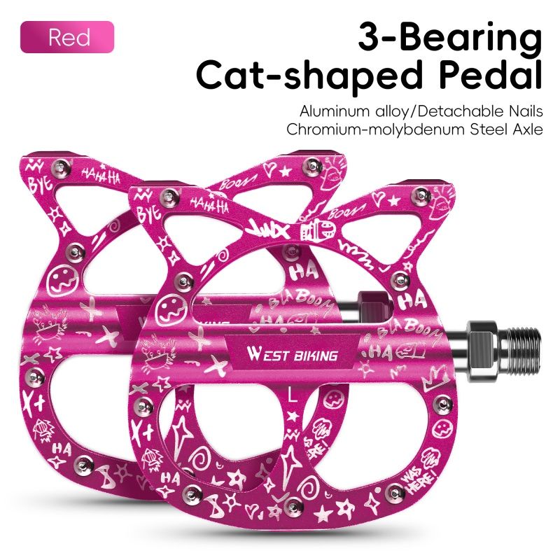WEST BIKING Bicycle Aluminum Pedals 3 Bearings Personalized Cat-Shaped Anti-Slip Pedals Fashion Multicolor MTB Road Bike Parts