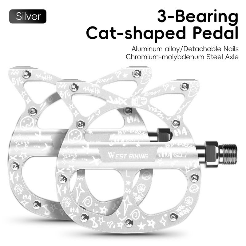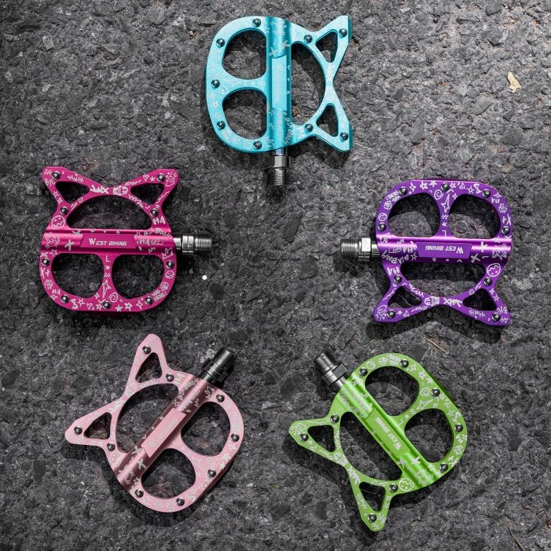 WEST BIKING Bicycle Aluminum Pedals 3 Bearings Personalized Cat-Shaped Anti-Slip Pedals Fashion Multicolor MTB Road Bike Parts