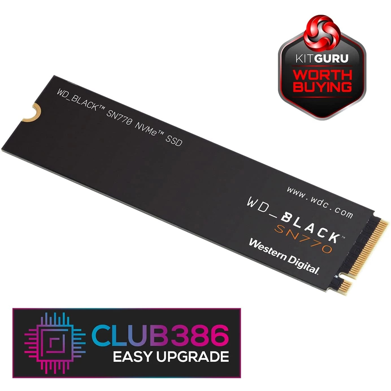 • Equipped with a PCIe Gen4 interface**, the WD_BLACK SN770 NVMe SSD helps fuel in-game responsiveness, minimize stutter, and provide smooth streaming for a performance boost you can see and feel. | **PCIe Gen4 storage technology requires a compatible motherboard. WD_BLACK SN770 is backwards-compatible with PCIe Gen3.
