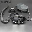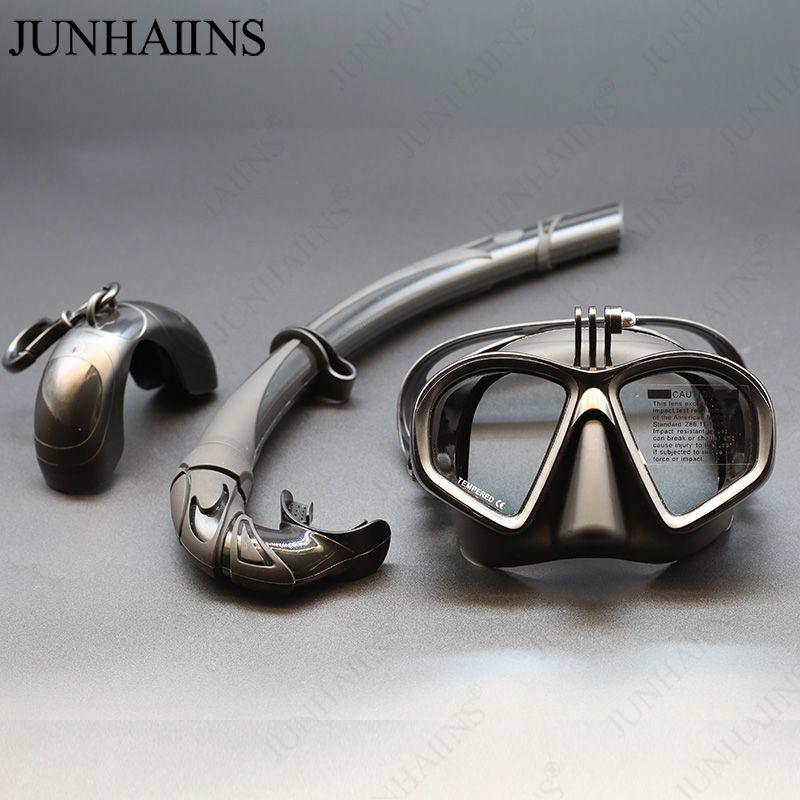 Wet Go-pro Mount Low Volume Tempered Glass Freedive Mask J-type Diving Mask Snorkel Set with Camera Mount Black