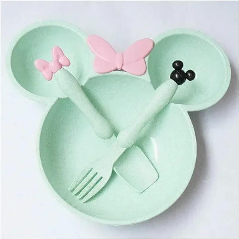 Wheat Straw Bowl Children Cartoon Tableware Set Baby Dinner Plate Baby Training Bowl Spoon Fork for Baby Kids Plate Baby Stuff