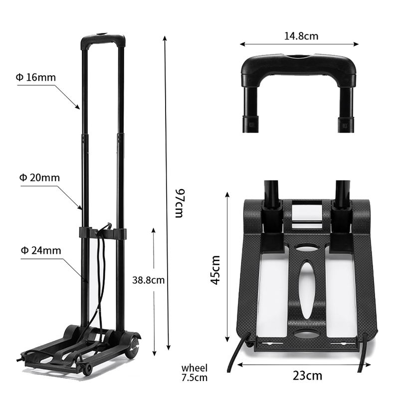 Parameters: wheeled folding luggage trolley, wheel diameter 7.3cm