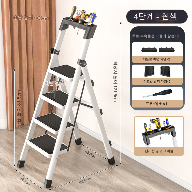 White 3/4Space Saving Stairs Step Stool Foldable Ladder For Home Garage Safety Herringbone Protable Anti-Slip Pedals Ladder