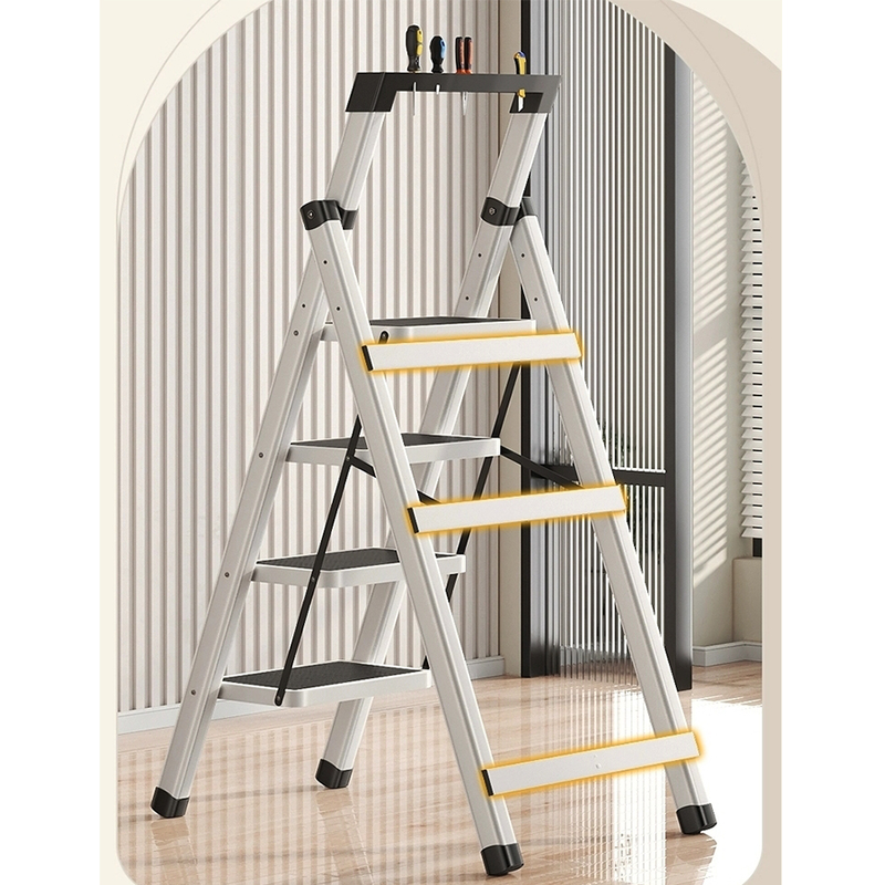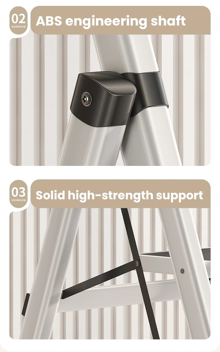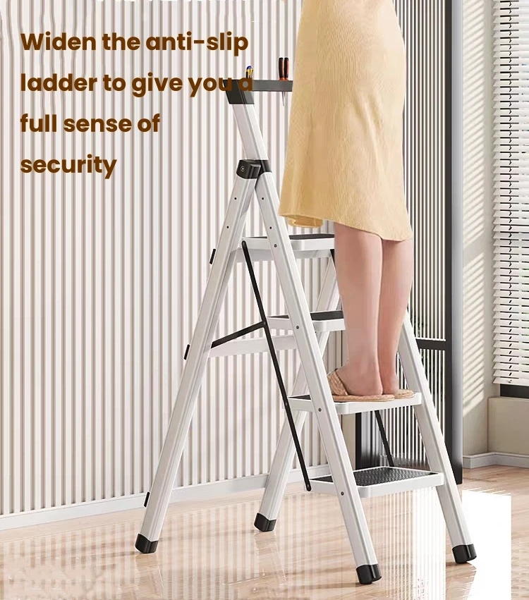 Climbing ladder mode: unfolded is a 4-step zigzag ladder, with anti slip texture design on the pedals and a stable triangular support structure, which can be used for picking up high objects, cleaning, etc.