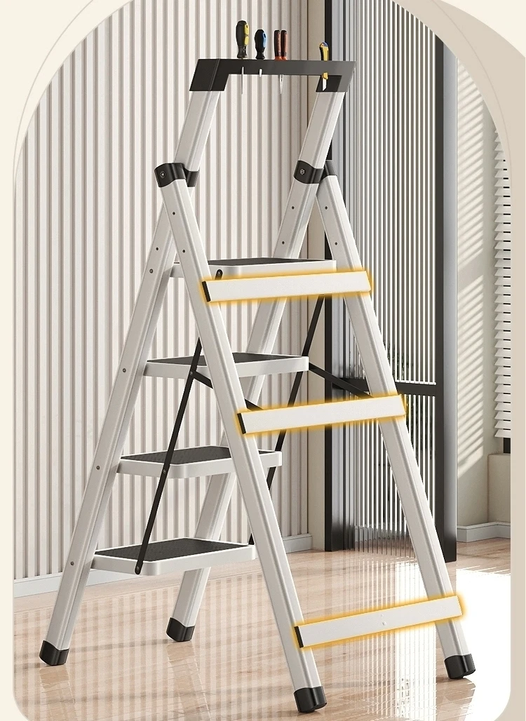 White 3/4Space Saving Stairs Step Stool Foldable Ladder For Home Garage Safety Herringbone Protable Anti-Slip Pedals Ladder
