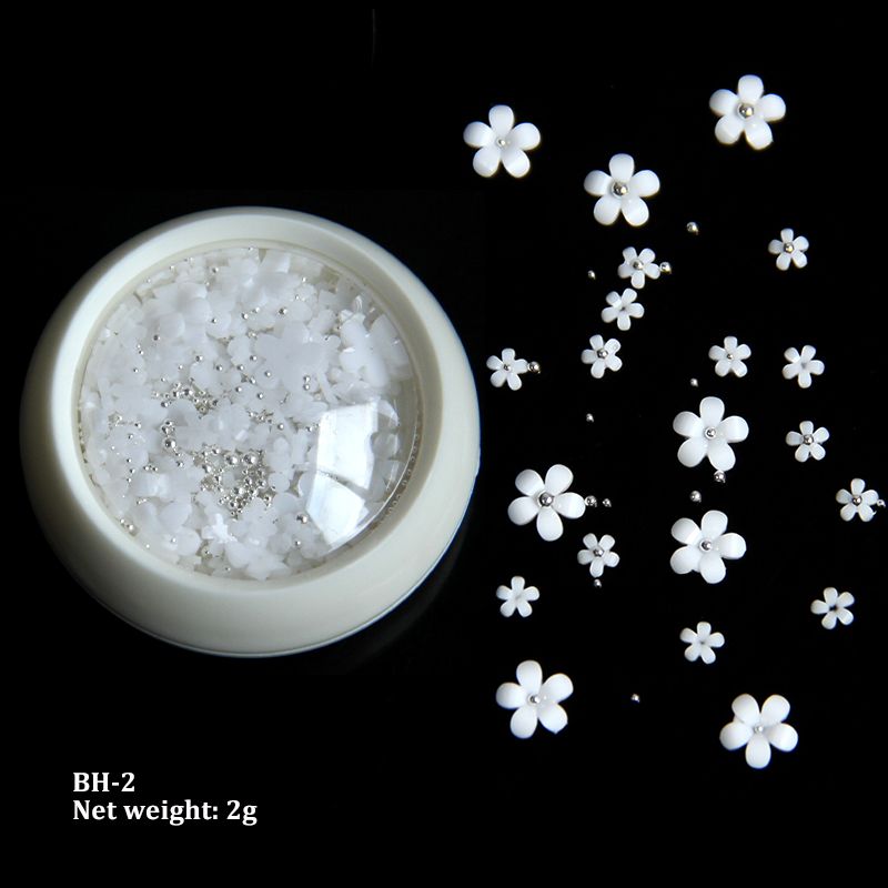 5g Acrylic Flower Nail Art Decoration Mixed Size White Rhinestones Gold Silver Gem Manicure Tool Accessories DIY Nails Design