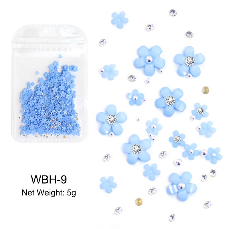 White Acrylic Flower Nail Art Decorations Mixed Size Rhinestones Red Blue Gem Manicure Tools Accessories DIY Nails Design 5g