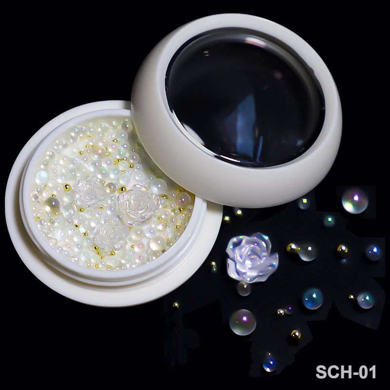 5g Acrylic Flower Nail Art Decoration Mixed Size White Rhinestones Gold Silver Gem Manicure Tool Accessories DIY Nails Design