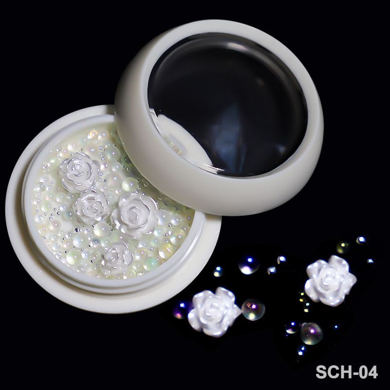 5g Acrylic Flower Nail Art Decoration Mixed Size White Rhinestones Gold Silver Gem Manicure Tool Accessories DIY Nails Design