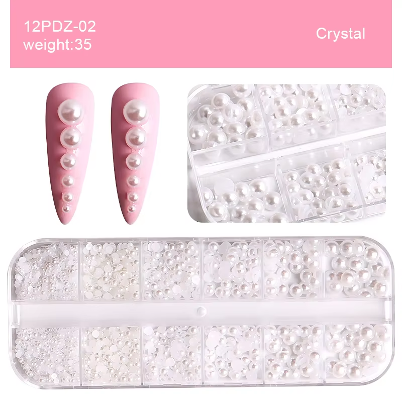 5g Acrylic Flower Nail Art Decoration Mixed Size White Rhinestones Gold Silver Gem Manicure Tool Accessories DIY Nails Design