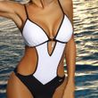 White Black Bikini Swimsuit Spot Solid Color Two Piece Beach Suit White 2XL