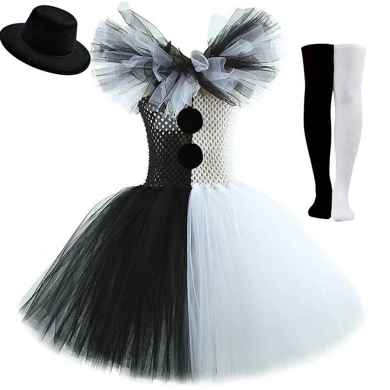 Theme: Princess Girls Black White Terrifier Clown Dress Up Costumes for Toddler Kids 1-12 Years Old.