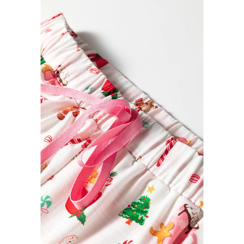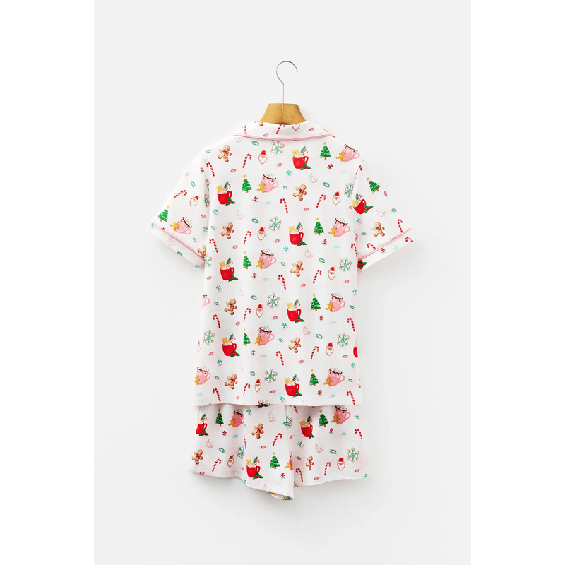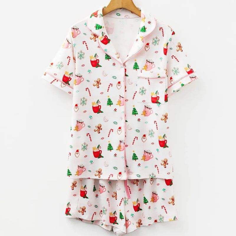 White Christmas Spirits Shirt Style 2pcs Short Pajama Set Pink L