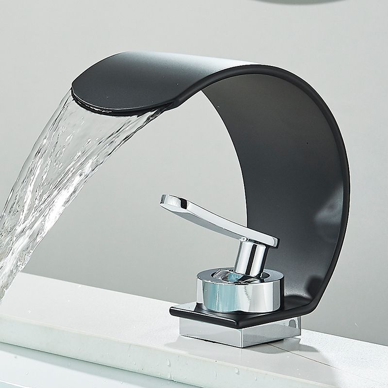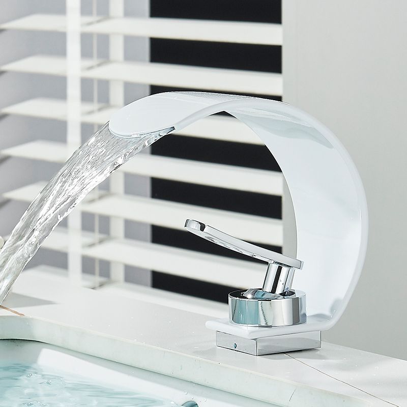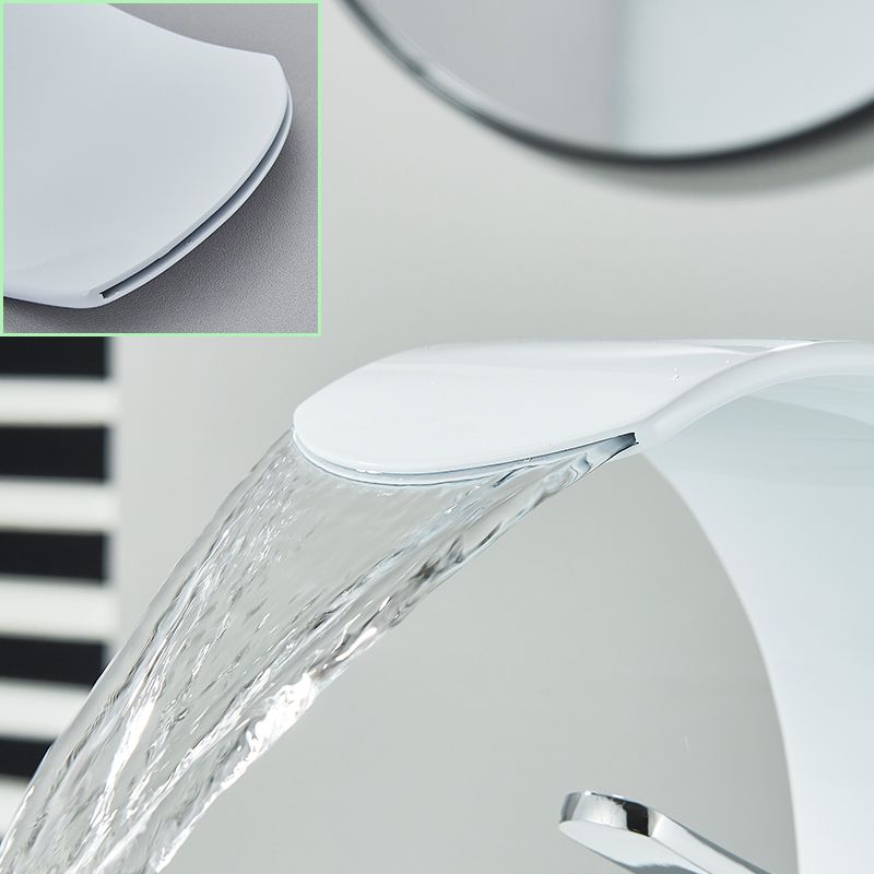 White Chrome Waterfall Basin Faucet Single Hole Deck Mount Single Handle Cold Hot Water Mixer Taps Bathroom Crane