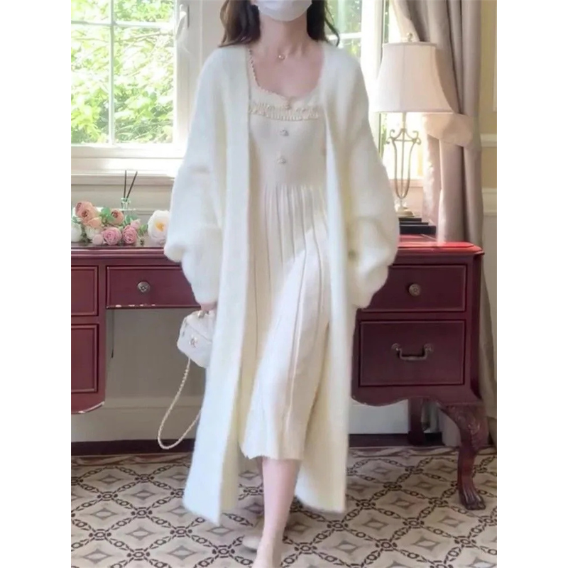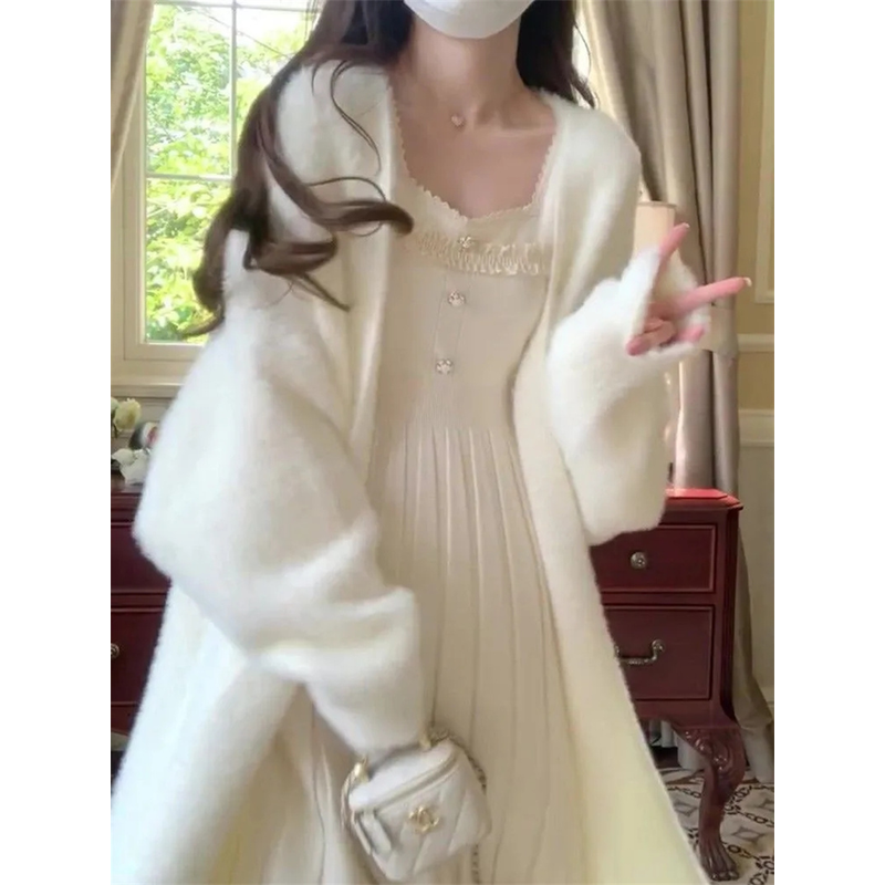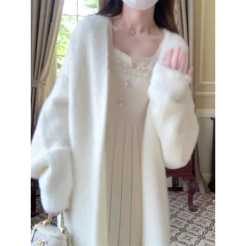 White Gentle Mink Fur Sweater Knitted Cardigan Women's 2024 Autumn Winter New Loose Versatile mid to long Lazy Milk fufu Jacket