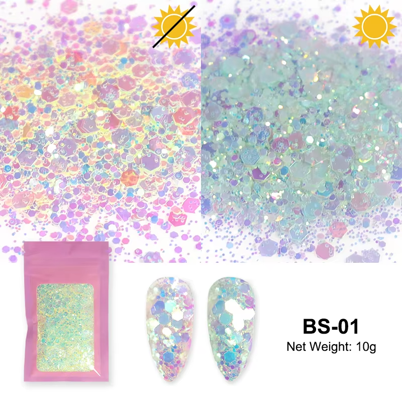 White Iridescent Nail Glitter AB Color Shiny Mermaid Sequins Mirror Irregular Slices 3D Flakes Paillettes Nail Art Decorations