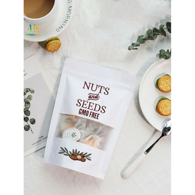 Best Selling White Kraft Paper Frosted Window Bag Waterproof Nut Biscuit Food Packaging Bags Custom Logo