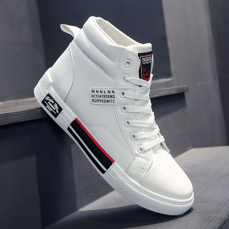 White Men Casual Tennis Comfortable Lace-up Leather Casua Walking Shoes White 43
