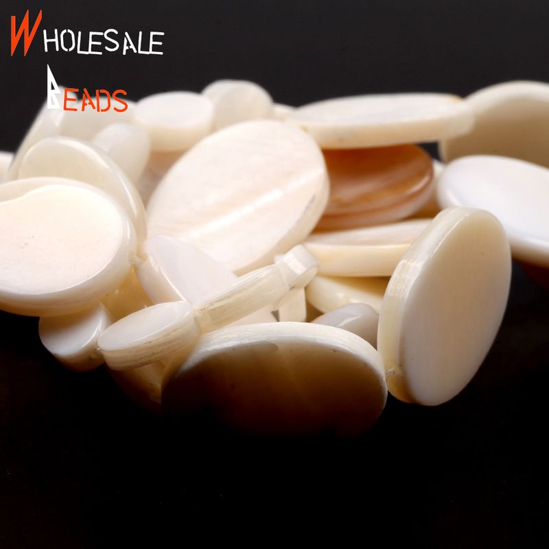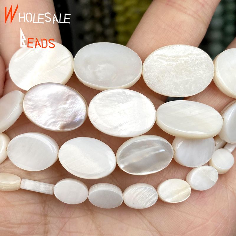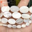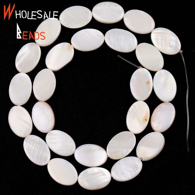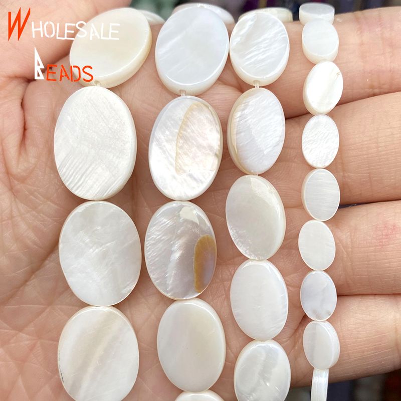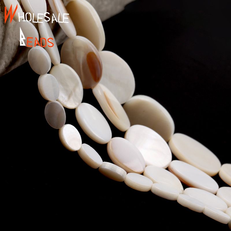 White Natural Mother of Pearl Shell Flat Oval Spacer Beads For Jewelry Making DIY Bracelet Necklace Handmade15''