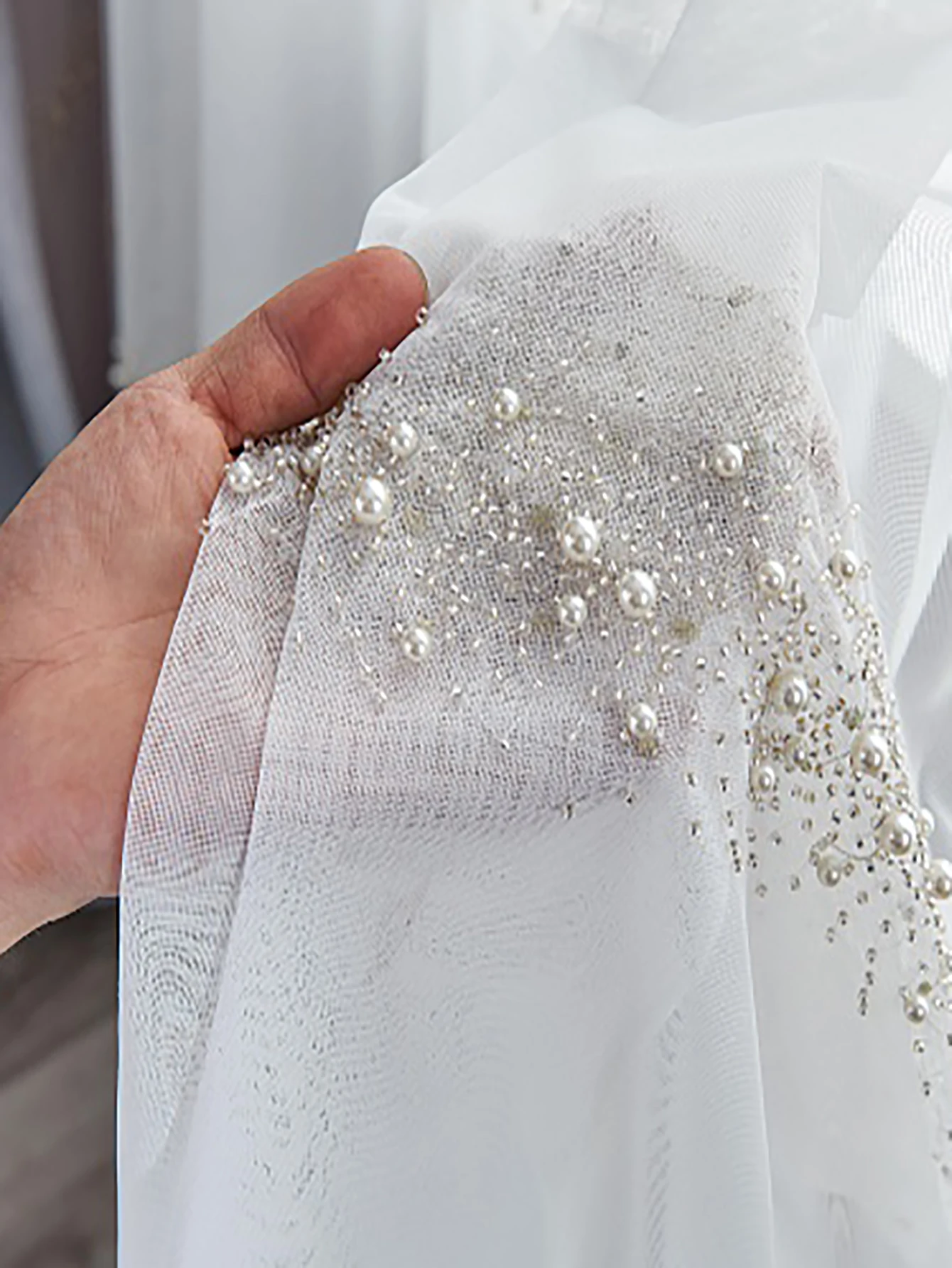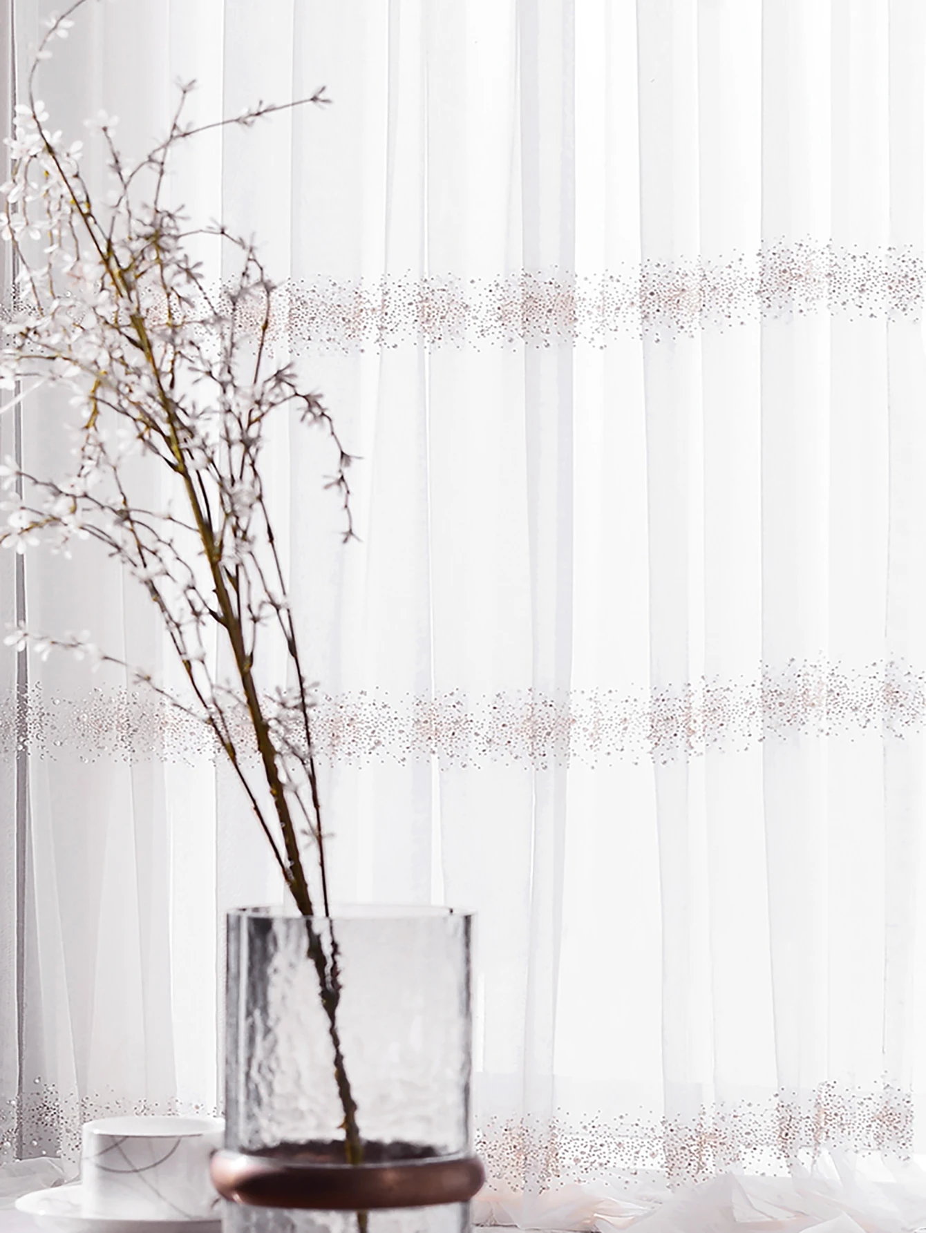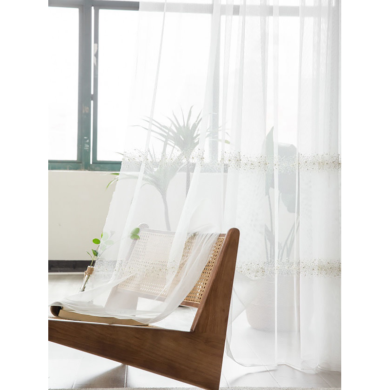 White Sheer Panel Curtain, Modern Polyester Faux Pearl Decor Light Filtering Privacy Sheer Curtain For Home