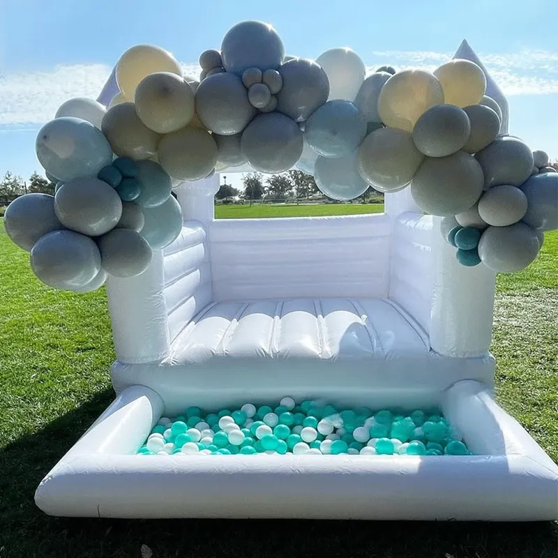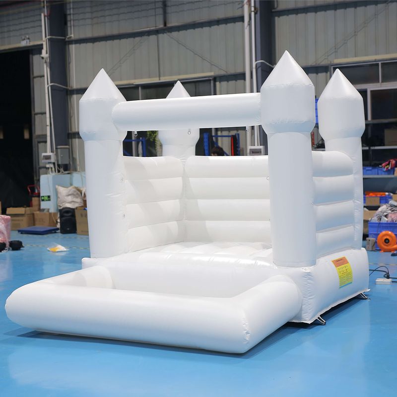 This white bouncer tent is specially designed for wedding, a beautiful white bouncy castle, can be used for both entertained and photographic. The white wedding bounce house can be decorated with colorful balloons,Made of top quality Plato PVC tarpaulin, suitable for both kids and adults.