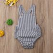 Cotton blend, cross back, open back, bodysuit, stripes, button tops, sleeveless baby jumpsuit.
