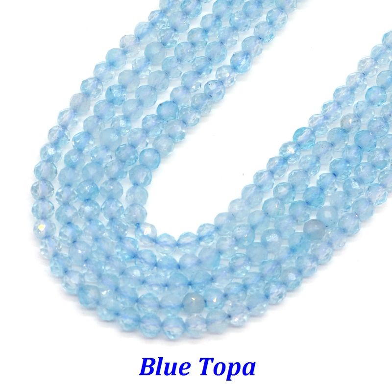 Wholesale Natural 2mm 3mm 4mm Blue Topaz Faceted Round Loose Gem Beads For Making Jewelry DIY Necklace Bracelet Arts Crafts Gift