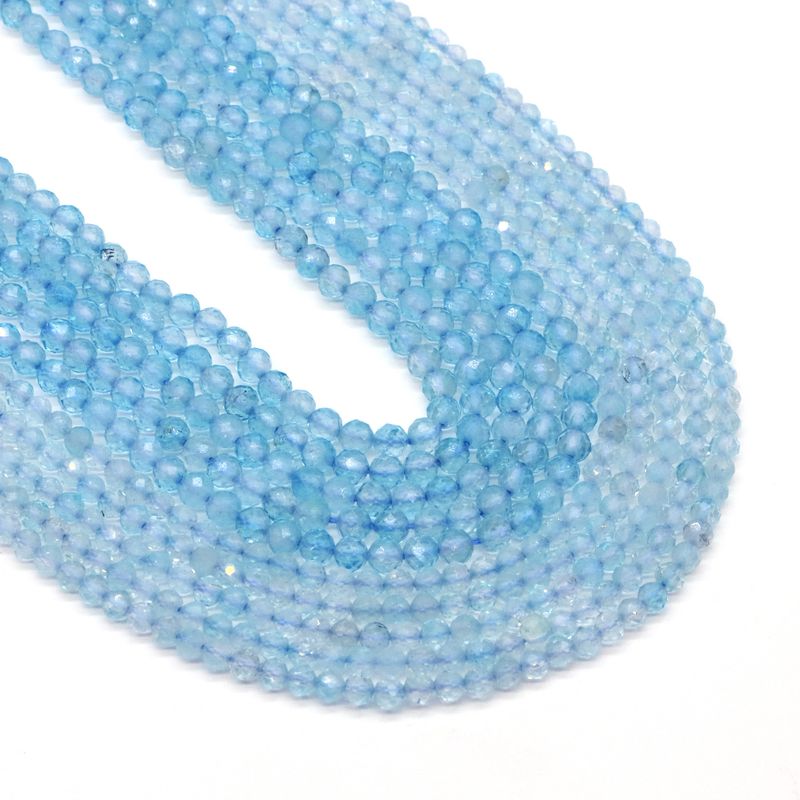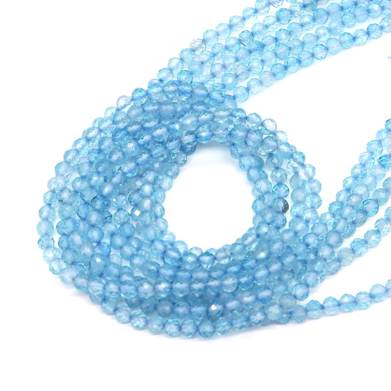 Wholesale Natural 2mm 3mm 4mm Blue Topaz Faceted Round Loose Gem Beads For Making Jewelry DIY Necklace Bracelet Arts Crafts Gift