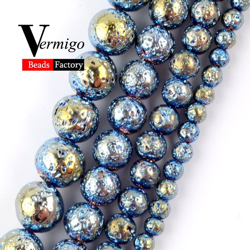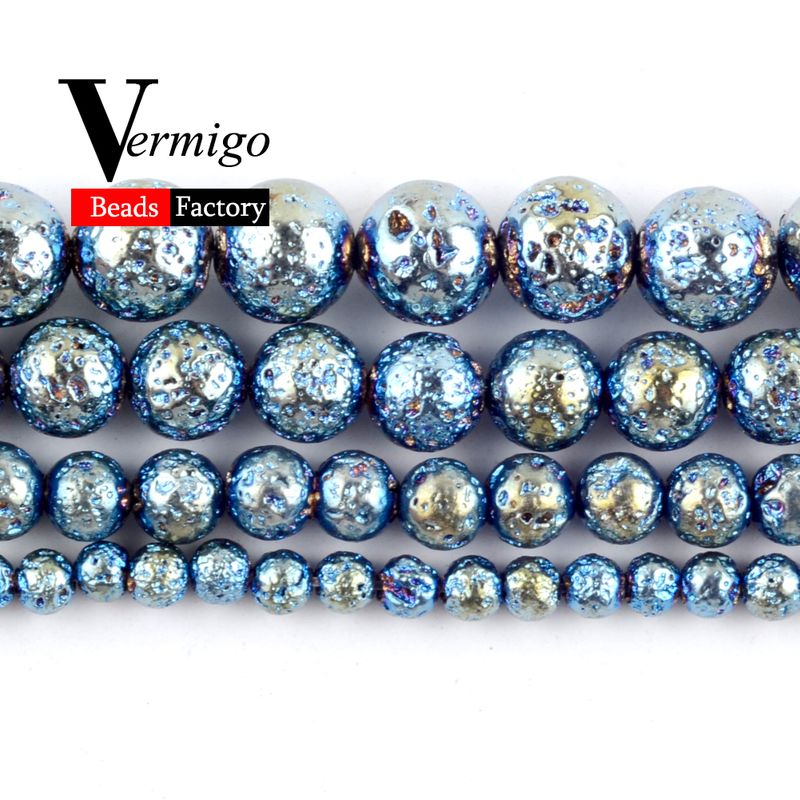 Wholesale Natural Stone Beads Blue Hematite Lava Mineral Loose Beads For Jewelry Making 4 6 8 10mm Diy Bracelet Accessories