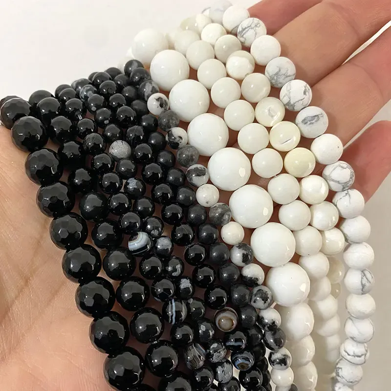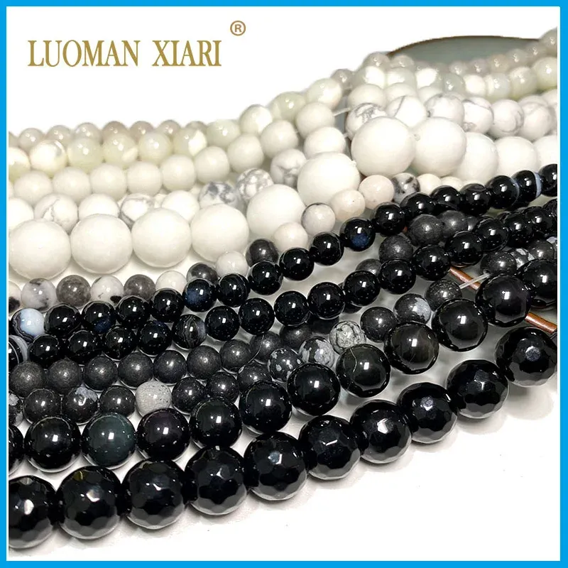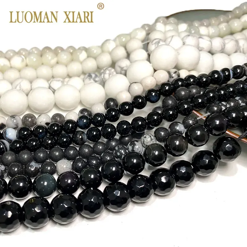 Wholesale Natural Stone Beads Round Black White Agates Turquoise Obsidian Labradorite For Jewelry Making DIY Bracelet Necklace