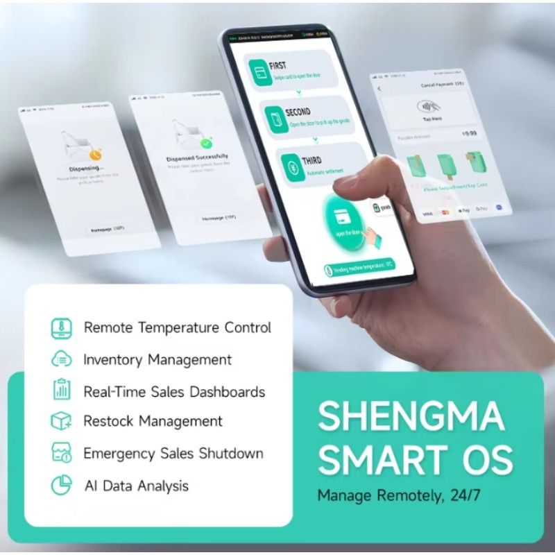 • AI Visual Checkout: Open the door, pick up items, and close it for automatic payment.