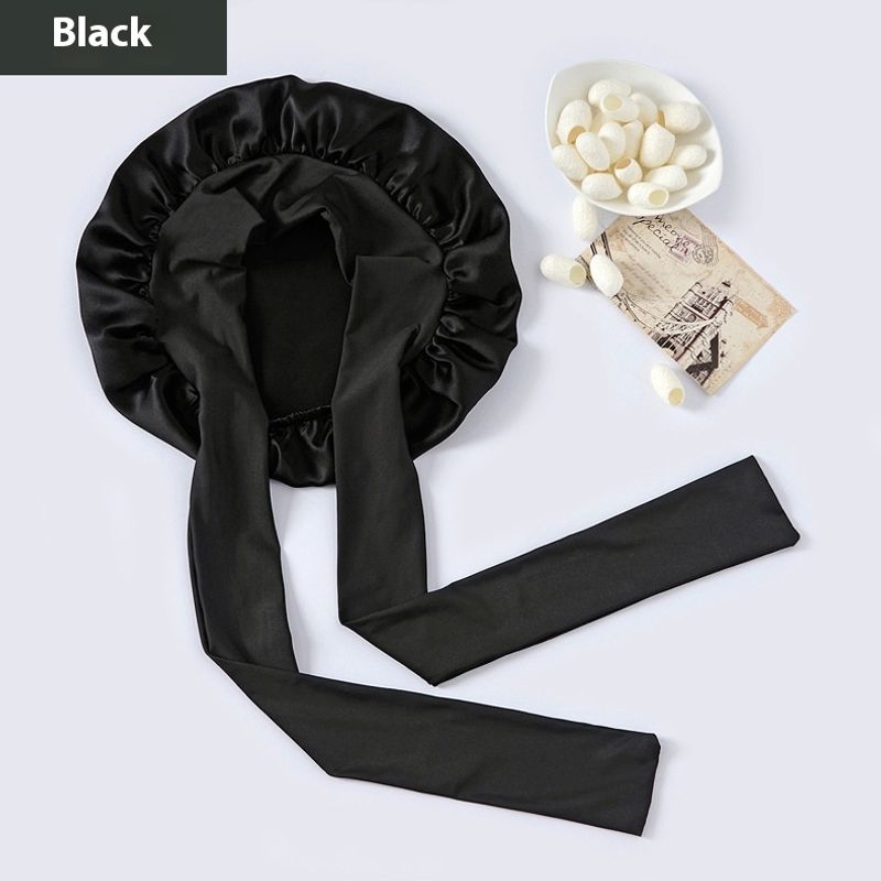 Wide-brimmed Lace-up Adjustable Elastic Large Silk Nightcap Champagne