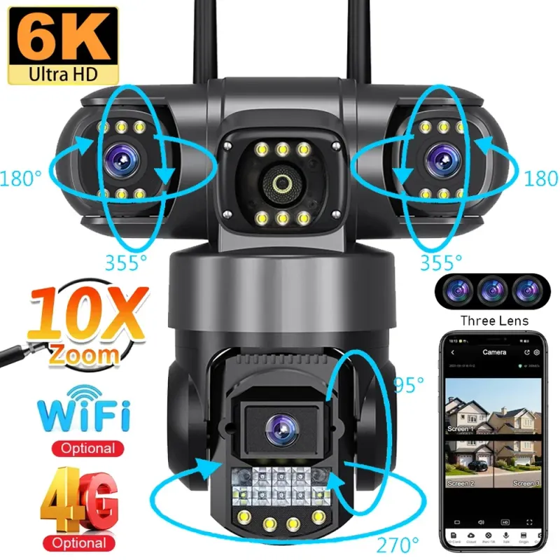 3 Lens Video Surveillance Camera Wifi Network CCTV Camera 4G SIM Card Wireless 360 Monitor Outdoor Waterproof Security Cameras
