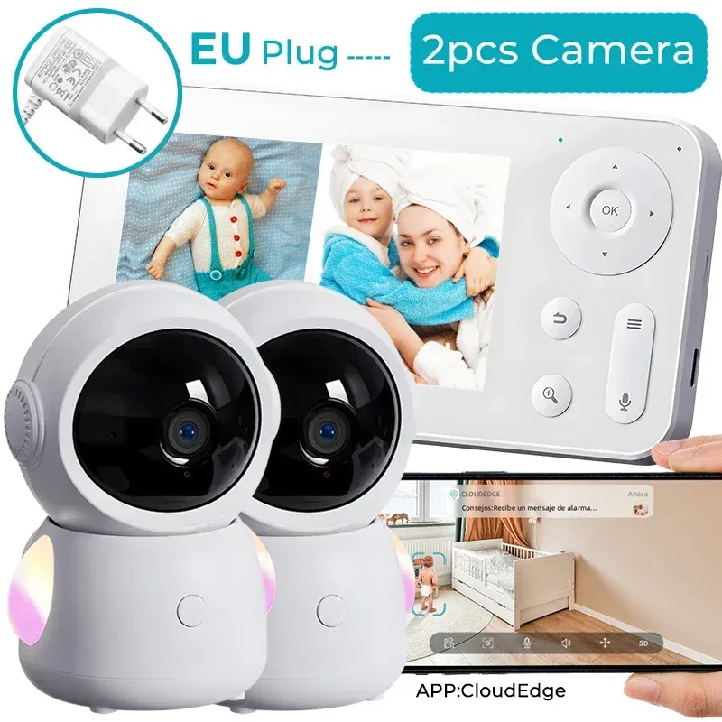 WiFi Baby Monitor with Two Camera Split-Screen Baby Phone via APP Control & 4.3" IPS Screen 2K 3MP Auto Tracking PTZ Baby Camera