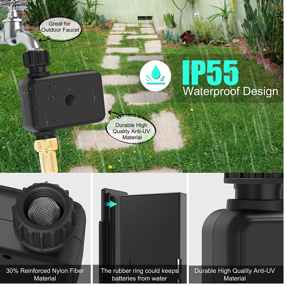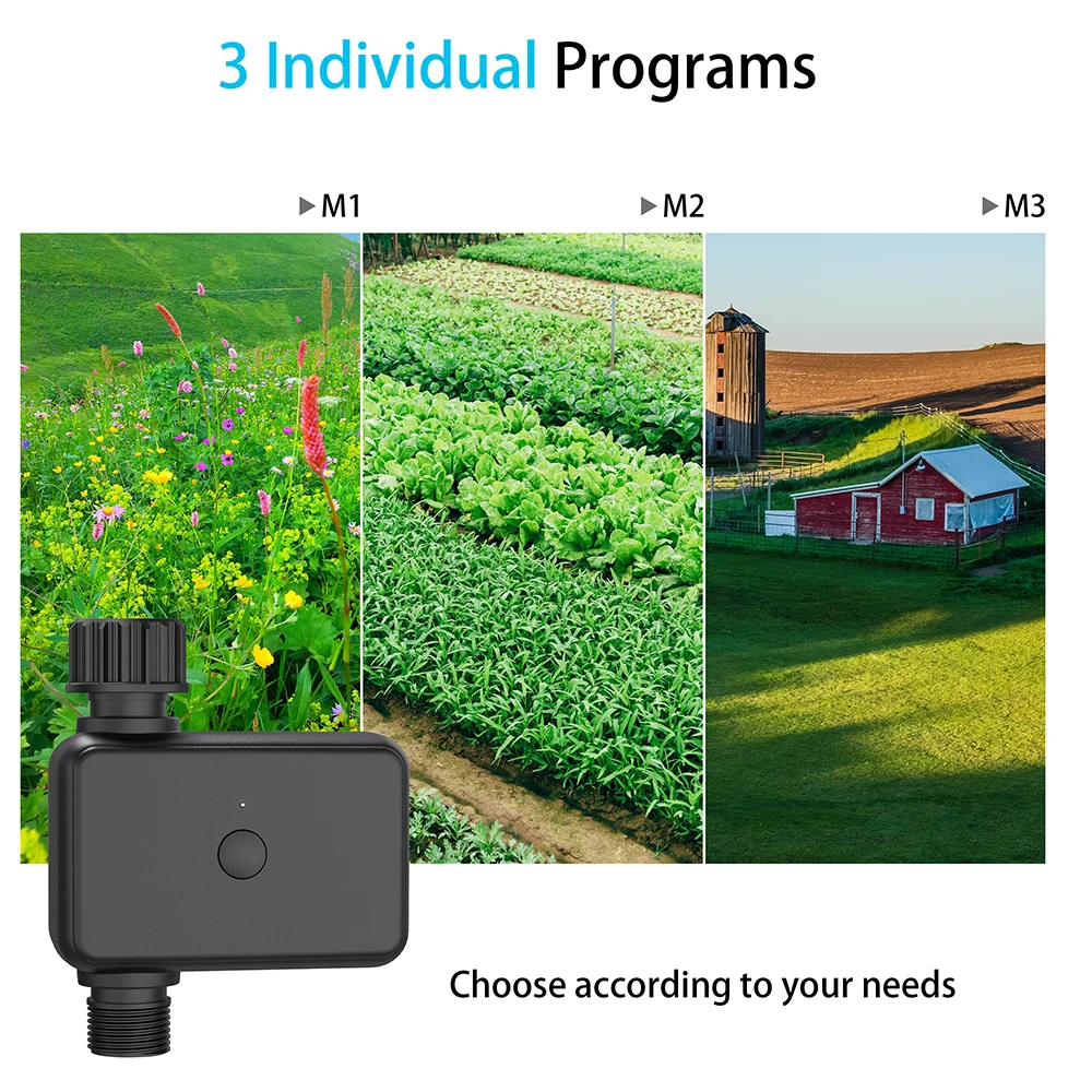 - It is suitable for lawn watering, potted drip irrigation, swimming pool water storage, atomization cooling, temporary watering and other scenarios. WiFi gateway Bluetooth connection, remote voice control switch, support ordinary single timed watering, can also set cycle timed watering plan, manual weather delay, can query the watering record (if the mobile phone is not connected for a long time, the watering record may be lost).