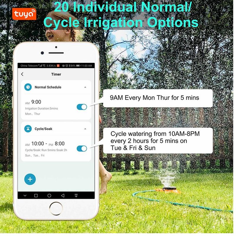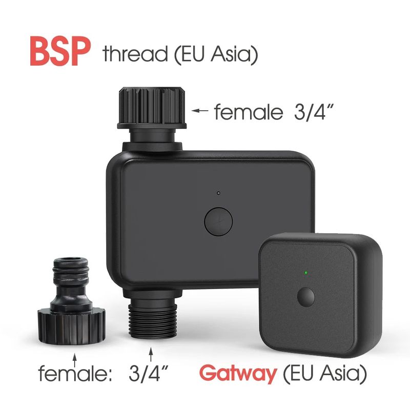 - It is suitable for lawn watering, potted drip irrigation, swimming pool water storage, atomization cooling, temporary watering and other scenarios. WiFi gateway Bluetooth connection, remote voice control switch, support ordinary single timed watering, can also set cycle timed watering plan, manual weather delay, can query the watering record (if the mobile phone is not connected for a long time, the watering record may be lost).