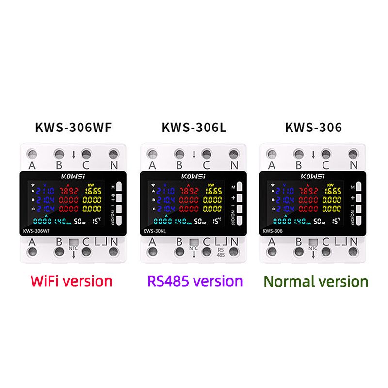 Wifi Power Energy Meter AC Monitor AC 85-290V 80A 3 Phase 4-wire DIN Rail Over Under Voltage Protector Electricity Meter