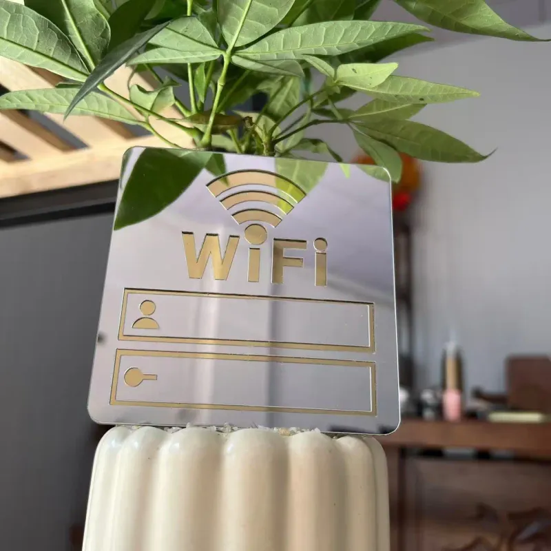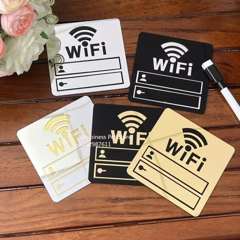 WiFi Sign Sticker Mirror Surface Account Password Acrylic WiFi Sign 3D Mirror Wall Sticker for Public Places House Shops Home