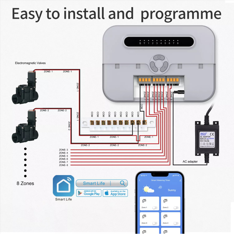 SMART SPRINKLER CONTROLLER - Connects to the WiFi, Monitors and controls your sprinkler system anywhere from your mobile phone. Work with the Amazon Alexa and Google Assistant for hand-free voice control.
