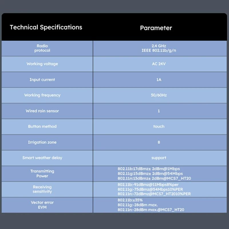 Weather Aware: The controller can automatically detect the weather status, skip the watering plan automatically on windy/rainy/snowy days, save water and money.