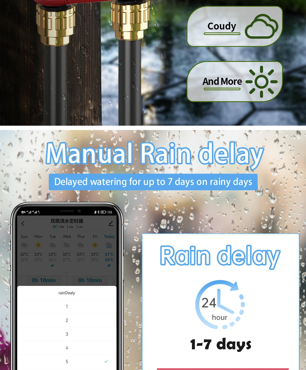 2. According to the local weather, the weather delay can be set manually