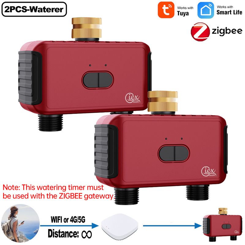 WIFI & ZIGBEE 2-Zone Watering Timer Smart Garden Automatic Irrigation System Drip Sprinkler Controller Valve Tuya 2MQTT ZHA