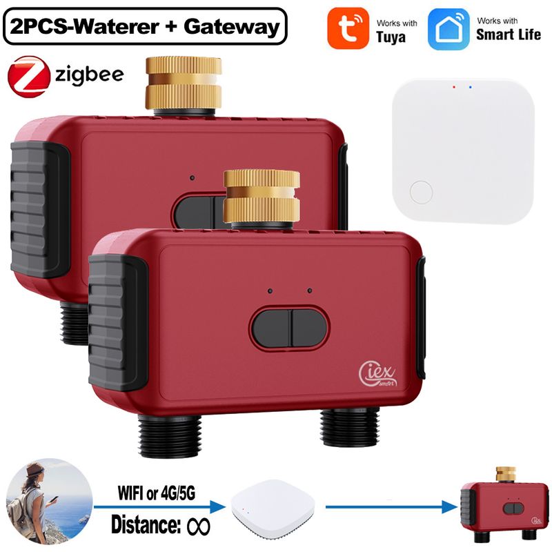 WIFI & ZIGBEE 2-Zone Watering Timer Smart Garden Automatic Irrigation System Drip Sprinkler Controller Valve Tuya 2MQTT ZHA