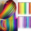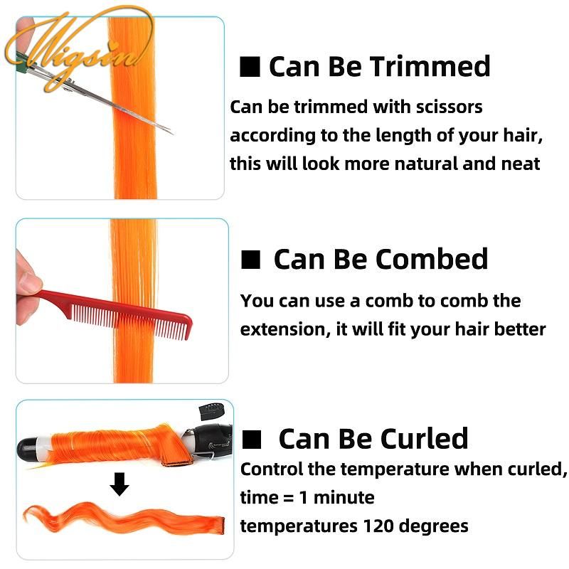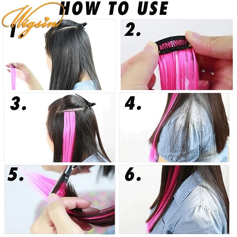 WIGSIN Synthetic 10pcs Colored Hair Synthetic Extensions Colorful Clip in Hair Long Straight Hair for Kids Girls Women