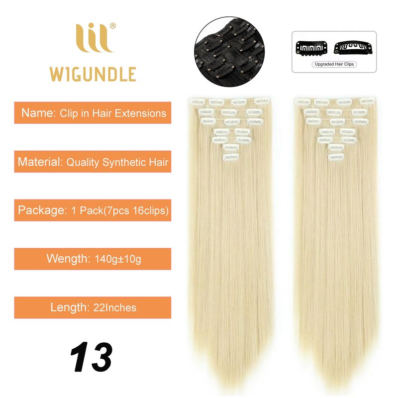 Wigundle 7pcs/Set Long Straight Synthetic Hair Pieces 22 Inches Clip-In Hair Extension for Women Fake Hair Extensions