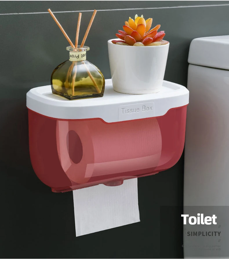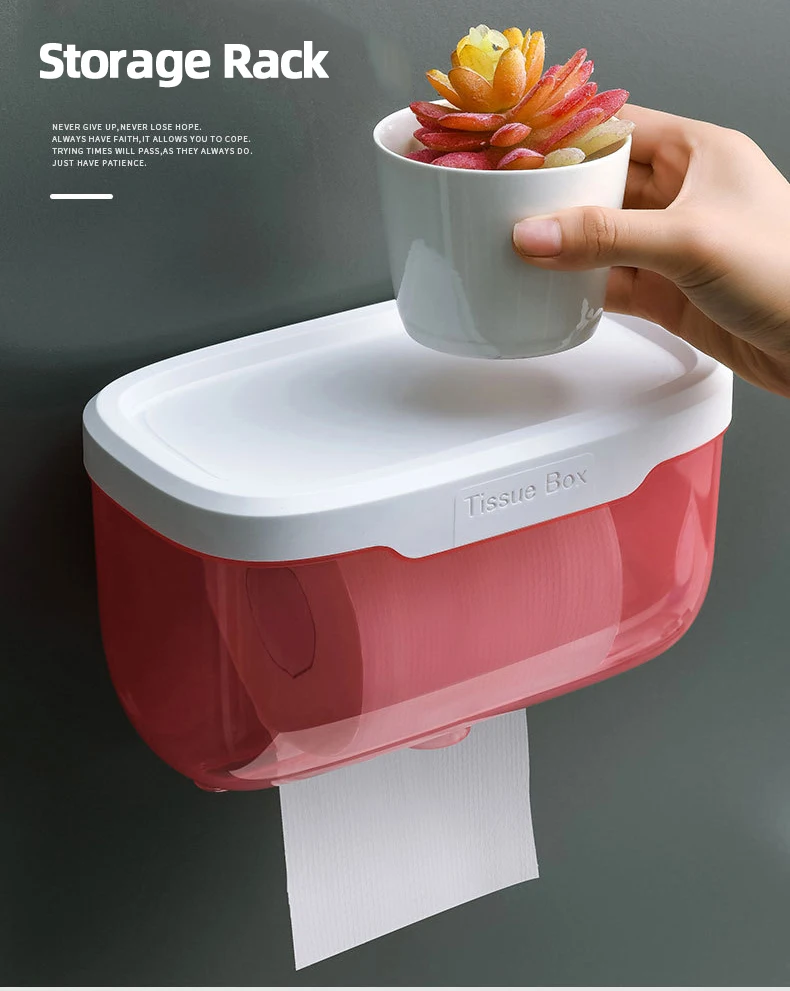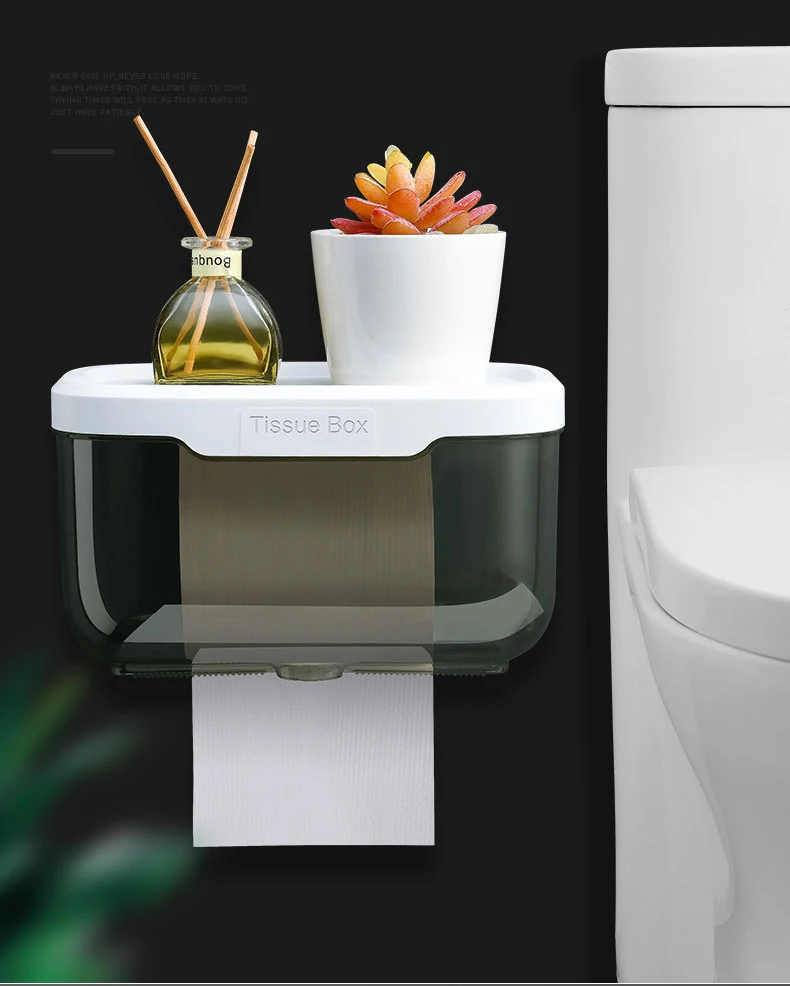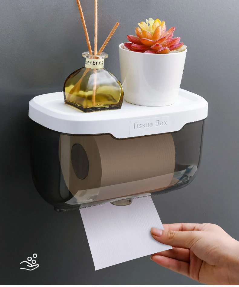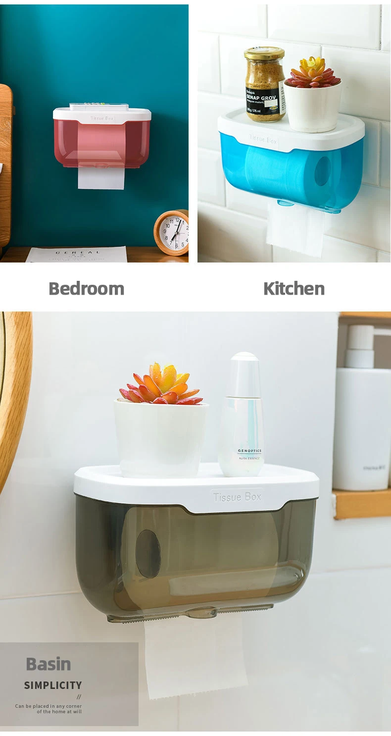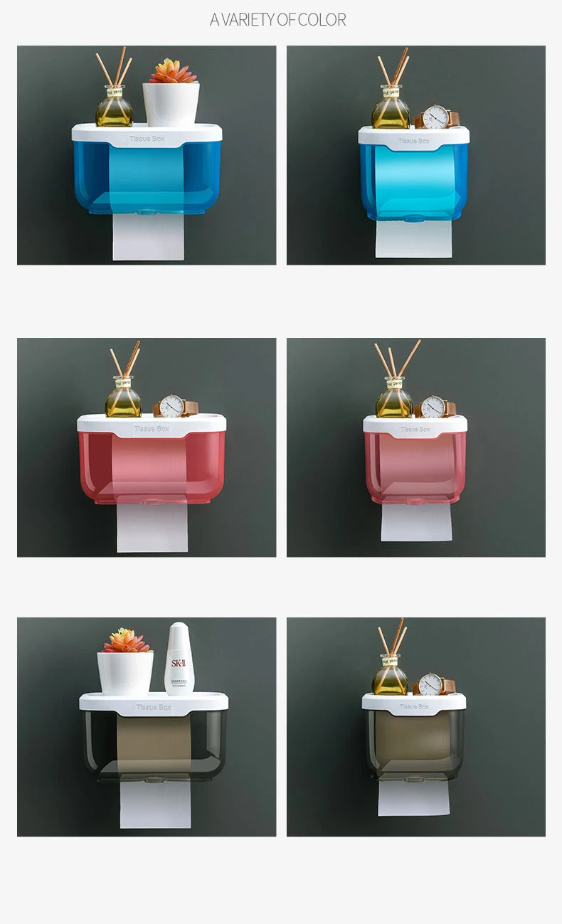 WIKHOSTAR Wall Mounted Tissue Holder for Bathroom Storage Box Punch-Free Toilet Paper Holder Storage Rack Paper Towel Organizer