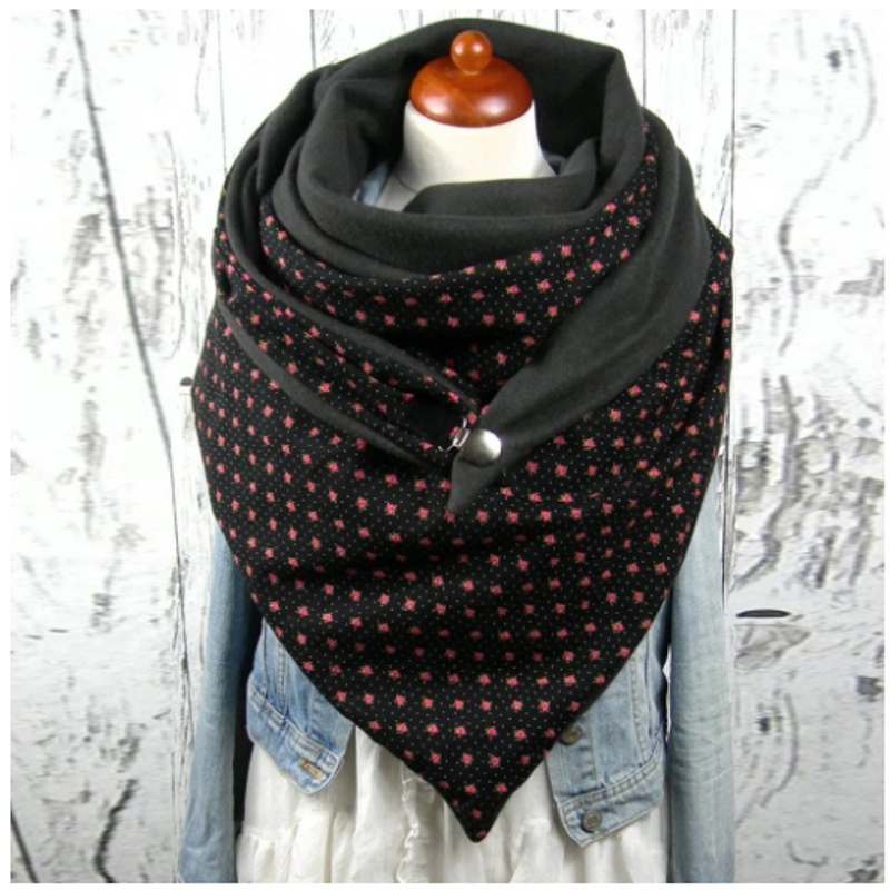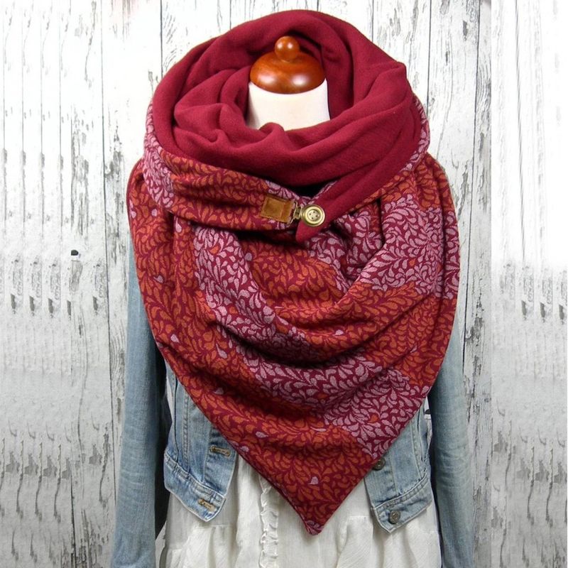 Fashionable Women's Solid Stitch Print Button Wrapped Soft Casual Warm Scarf Shawl