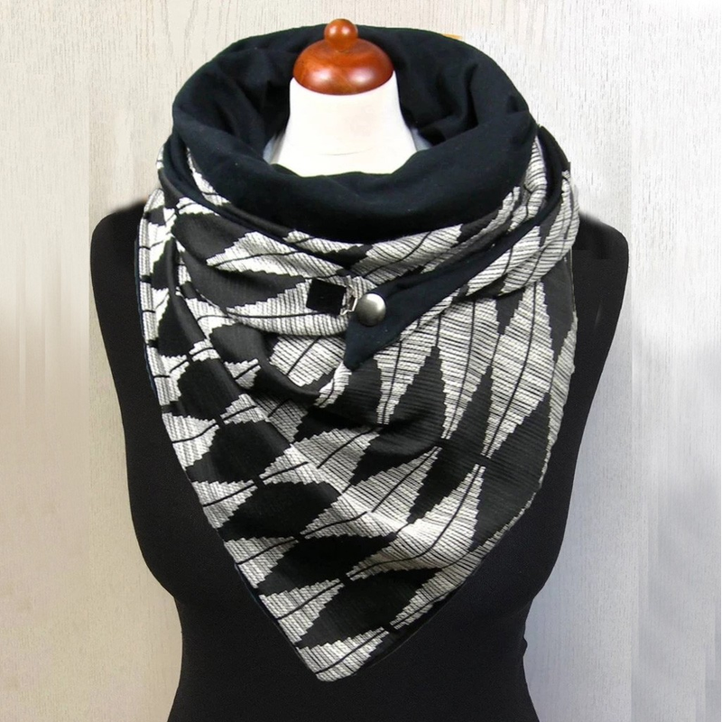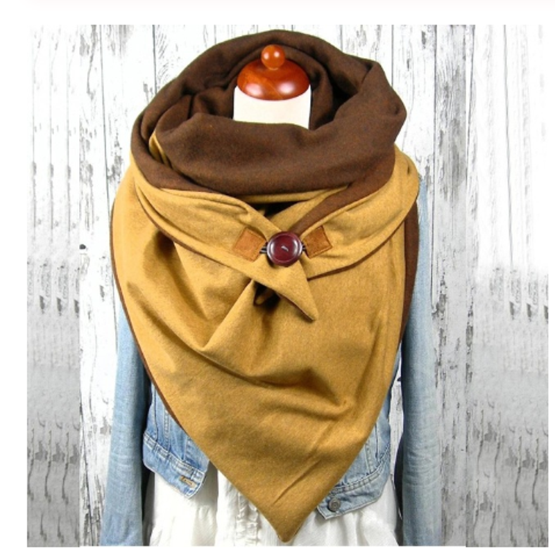Fashionable Women's Solid Stitch Print Button Wrapped Soft Casual Warm Scarf Shawl